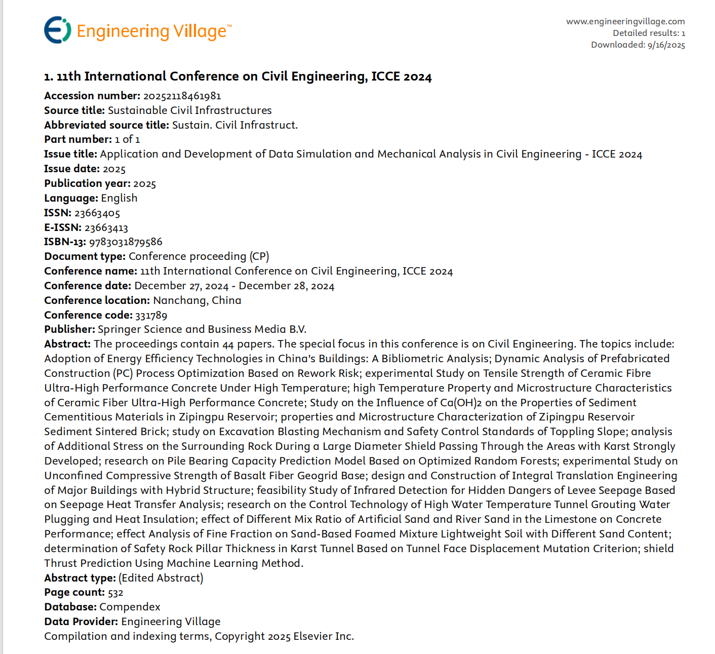 近期,有作者向组委会反映:有个人或机构冒用本会议名义,通过伪造网站、邮件、社交平台等渠道发布虚假征稿信息并违规收费,严重侵害会议声誉及参会者权益。The 12th International Conference on Civil Engineering (ICCE2025) will be held in Nanchang, China during December 27-28, 2025.